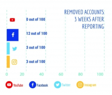 Let’s say you were able to positively identify more than 15,000 fake social media accounts. You reported a significant number of them to social media platforms as fake. Nearly a month later, who many do you think would still be on the platform?